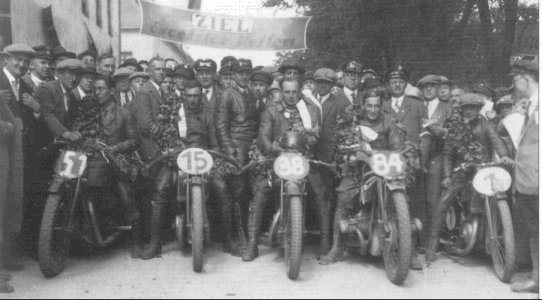 Die Sieger vom Marienberger Dreieck am 24.06.1928, ganz links (Nr 51) A.F. Dom auf Standard