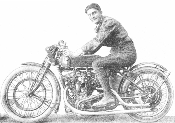 Francesco Franconi, hier auf einer seltenen Zweizylinder - Motosacoche- Werksrennmaschine vom Typ DOHC 2C 14A TT mit 692cm, ausdem Jahr 1922/23