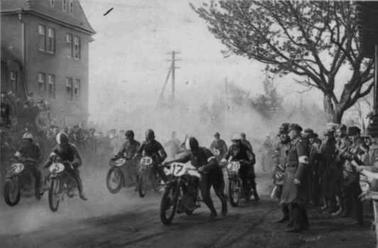 1927, Badbergrennen Hohenstein Ernstthal, ganz links (Nr. 23) der Freiberger Privatfahrer Erler auf Standard