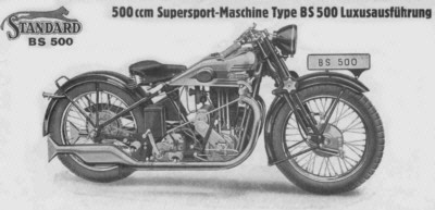 bezeichnete B.S. 500. Ihr folgte die B.T. 750, die erste Zweizylindermaschine von Standard, welche sich besonders für den Gespannbetrieb eignete. Allmählich war auch Zubehör wie Beleuchtung, Fußbretter, Tachos