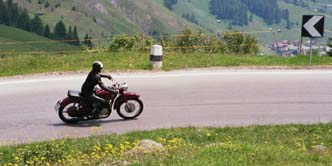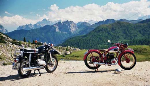 Anett auf der “familientauglichen” MZ. Das zweite Highlight des Tages (nach dem Frühstück) war der Paso di Falzarego, ca. 10 Kilometer nach dem Start. Mit kristallklarem Bergsee und Traumhaften Motiven