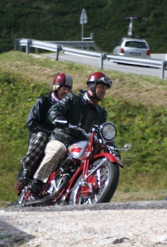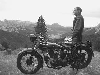 nicht die richtige Bezeichnung für dessen High - Tech - Geschoss) angesprochen, ob wir wüssten, dass in Corvara ein Hotelbesitzer lebt, dessen Hobby es ist, Motorräder zu sammeln.