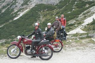 aus Untertürkheim, quasi bei Standard um die Ecke entstanden, hat sich auch sehr wacker geschlagen. 350 cm³ und 13 PS sind auch in den Bergen allemal genug. Satter Sound und super Durchzug, für einen 350 ccm Motor der damaligen Zeit sicher eher Oberklasse. Leider hat der wahrscheinlich durch langes Stehen verursachte Schmiermittelverlust an der Abtriebswelle dafür gesorgt, dass das Hurth - Getriebe am Abend des ersten Tages seinen Dienst verweigerte. Kupplungswelle und Abtriebshülse miteinander untrennbar verbunden, zu lange im kleinen Gang gefahren, Hülse auf der Welle heiß gelaufen, gefressen und Stopp. Wir haben versucht, es zu reparieren, aber fest ist fest, so dass die UT am zweiten Tag im “Stall” bleiben musste. Wer weiß, ob sie nächstes Mal wieder mit darf, ein Getriebe ist zwar organisiert, aber die Standard Rex wartet auch auf ihren ersten richtigen Einsatz. Na mal sehen.
